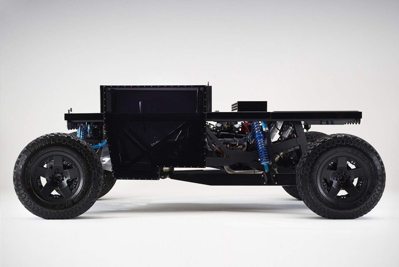 Mimochodem, když už tohle auto vypadá tak futuristicky, co byste tipovali jako pohonnou jednotku? Elektromotor? Nebo hybrid? Ale kdeže, pod “kapotou” je totiž všechno správně, tedy tak nějak po americku správně. Jo, uprostřed auta je uložen Chevy Small Block o výkonu 470 koní. Je mi jasný, že pokud jsem vás do teď nepřesvědčil, zcela jistě vaši pozornost už mám. Pokud byste se báli o dojezd, nemusíte. Vůz údajně pojme až 180 litrů paliva, to aby vaše dobrodružství nebyla nijak omezena.