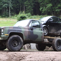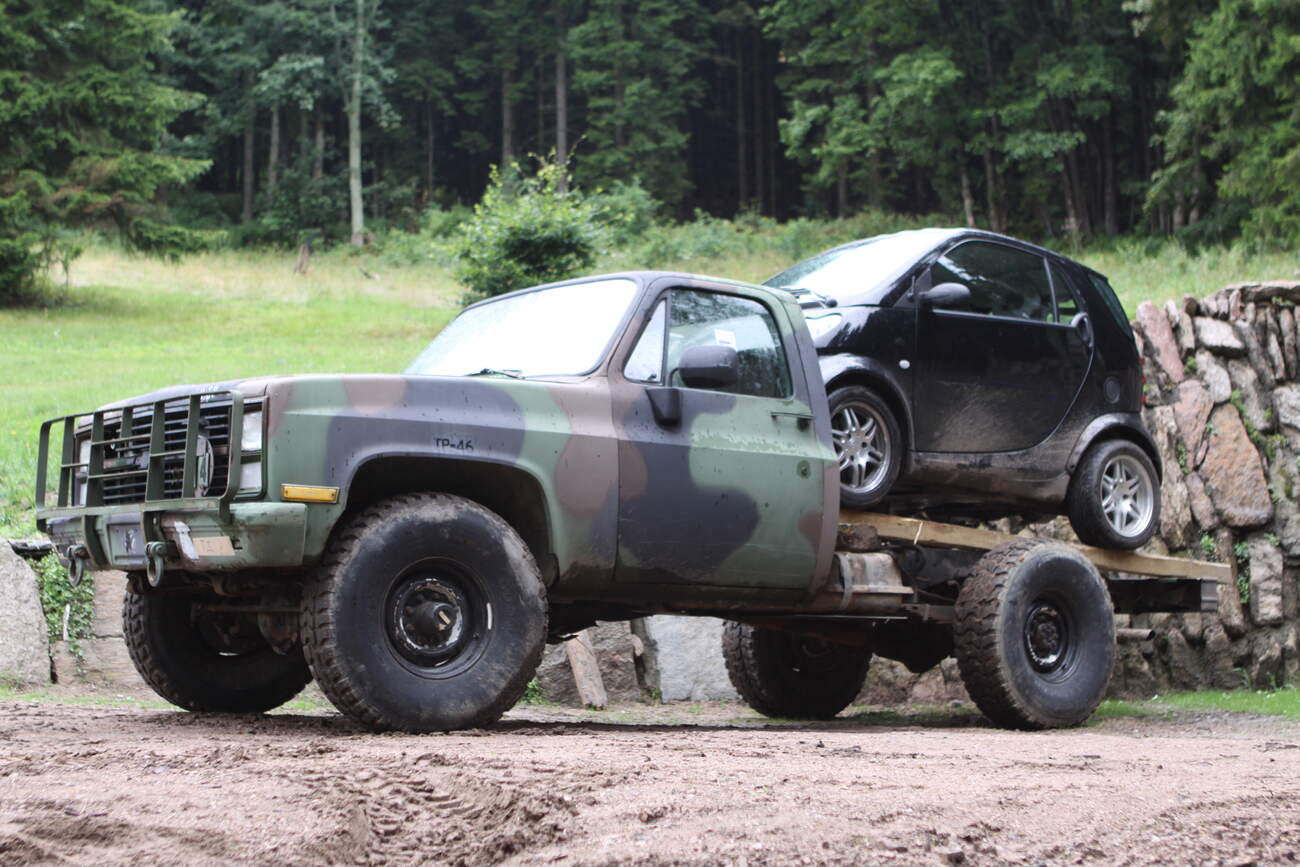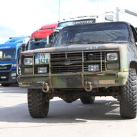 Chevrolet M1031A stojí na 37“ kolech z Hummeru H1 a má nesmyslně těžký V8 diesel se zvukem jako kovadlina praštěného kováře.