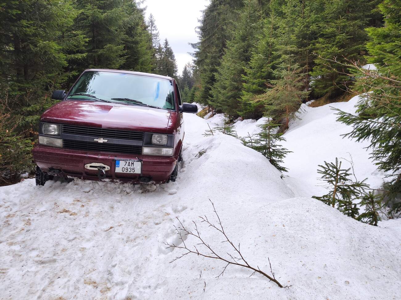 Chevrolet Astro AWD z roku 2004. Dostal rozvodovku s redukcí, podstatně větší kola, naviják a spoustu dalších nesmírně důležitých věcí, které se skvěle hodí na popojíždění do města.