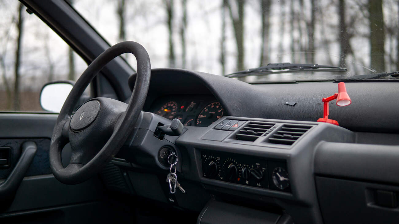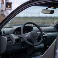 Za pozornost rozhodně stojí konfigurace tohoto vozu. Jde o akční výbavu ICE, která se vyznačovala ledově modrou barvou a klimatizací. Bohužel Clio mělo v případě instalace klimy podobný problém jako Felicia. Motor uměl pohánět pouze jedno příslušenství, čili vůz mohl být osazen buď klimou, nebo posilovačem, nikoli však obojím. Jeníkovo Clio tedy posilovač nemá, ale u auta vážícího pod osm set kilo to nijak zvlášť nevadí. Z buržoazních vychytávek musím dále zmínit elektrická okna (obě dvě), dálkové centrální zamykání, immobilizér, nebo budík měrky oleje v přístrojovém štítu. Překvapením mohou být naopak manuální zrcátka, ale vzhledem k tomu jak je vůz úzký není pro řidiče problém si obě nastavit klasickými páčkami ze svého místa.