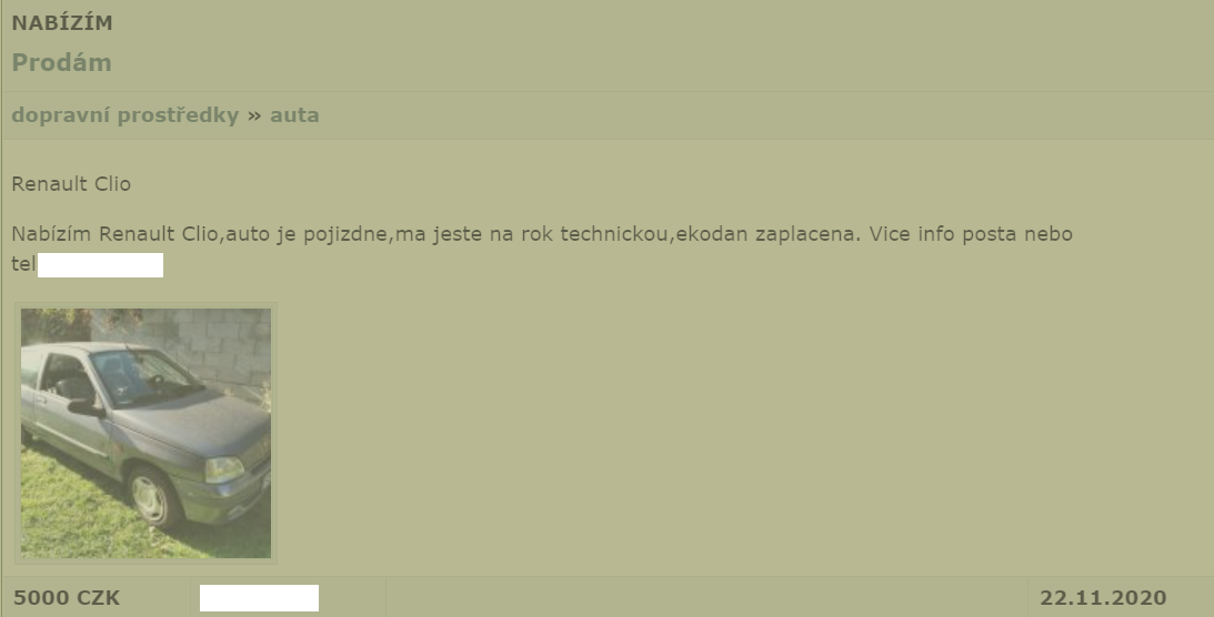 Jako mnoho zajímavých autíčkářových příběhů začal i tento v redakčním chatu. František tam poslal odkaz na inzerát z Nyxu (to je takový server pro lidi, co tvrdí, že zlatá doba internetu už skončila) s prostým popiskem “Někdo Clio?”.