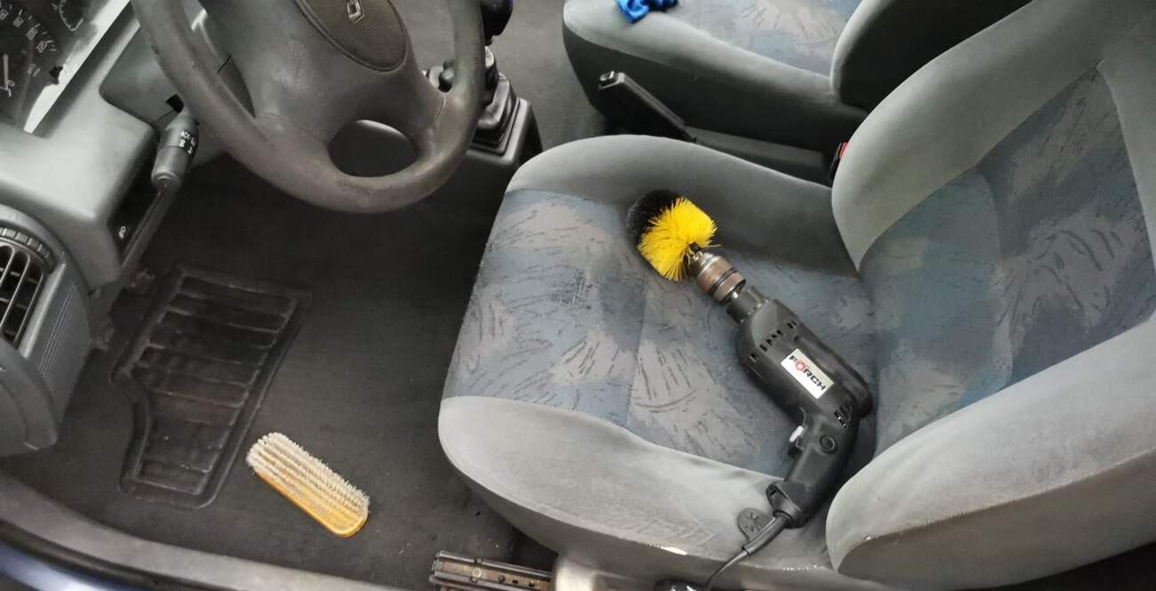 Samozřejmě že bylo nutné tento hodnotný dar ve formě osobního automobilu s klimatizací nejprve řádně připravit. Omšelý zevnějšek vyřešila tlaková myčka, na první pohled neutěšený stav interiéru se snadno vyřešil. Pod aftermarket potahy totiž čekala krásně zachovalá původní velurová sedadla a stačila trocha práce s kartáčem na vrtačce a koberce na podlaze vypadají skoro jako nové.
