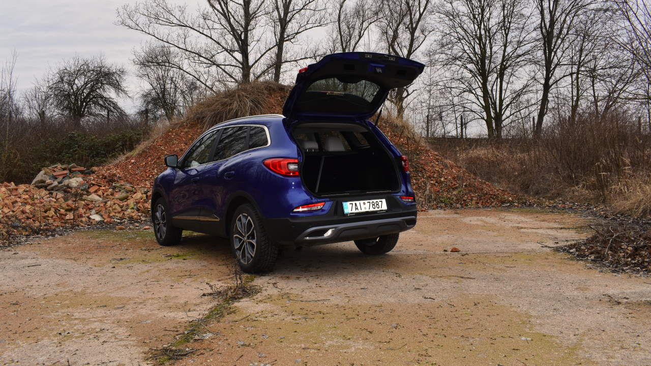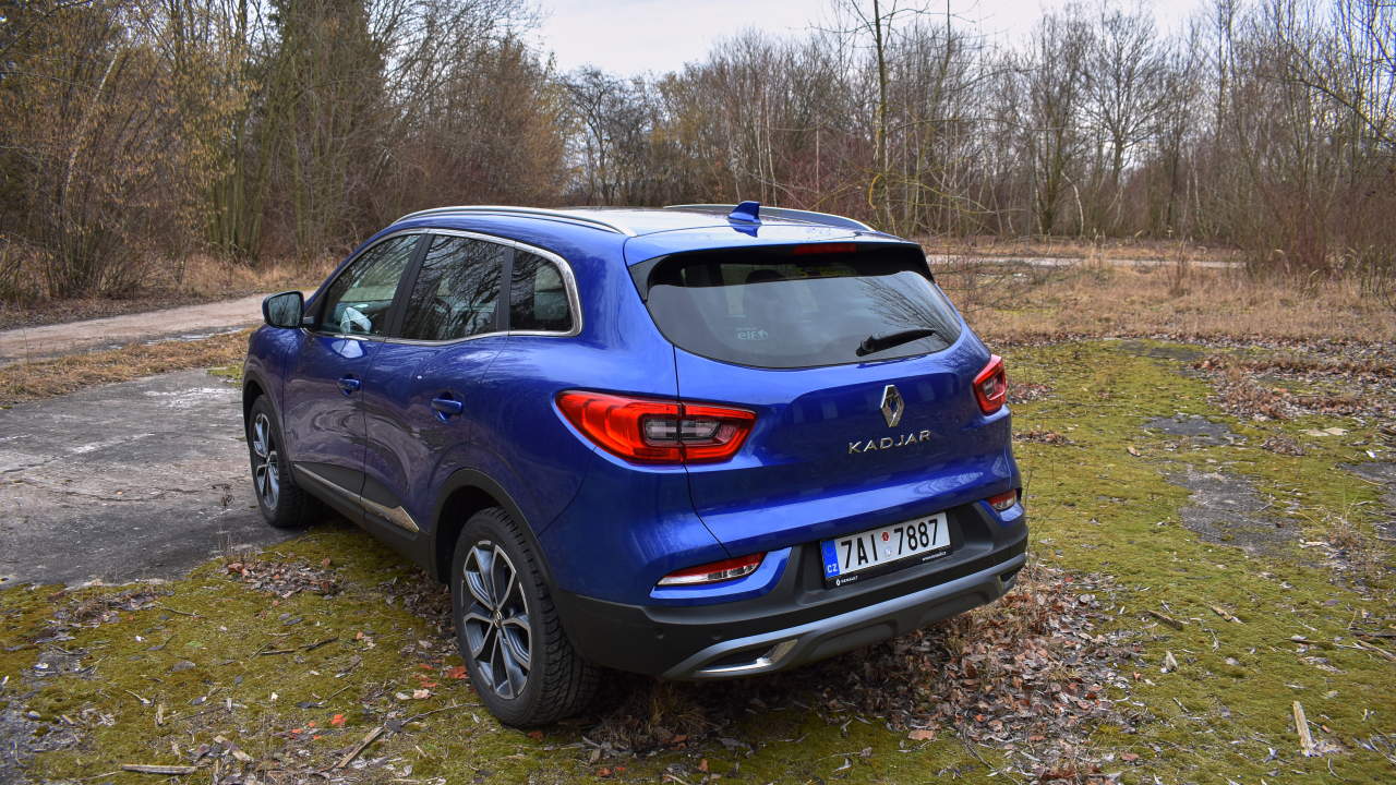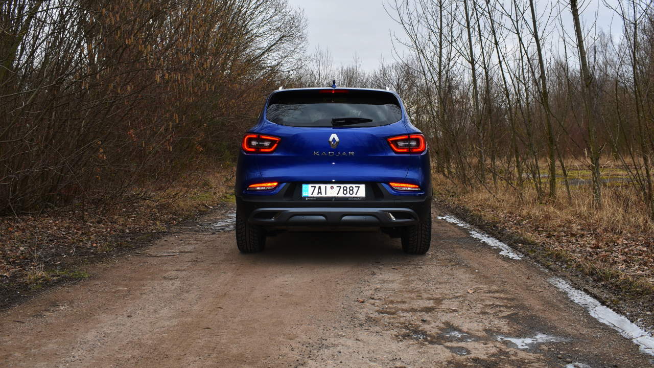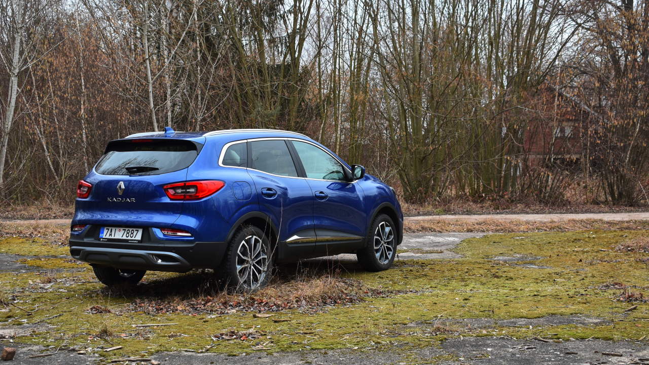 Z kabiny se přesuneme ven a opět se nemohu zbavit pocitu, že dojem z vozu je až překvapivě nefrancouzský. Design je umírněný až nenápadný a nejvýraznějším prvkem je vlastně jedině modrá metalíza. Ačkoliv nepatřím mezi vyznavače samoúčelných cingrlátek, přiznávám, že se mi současný designový jazyk Renaultů jednoznačně líbí a klidně bych ho na povrchu snesl více. Na druhou stranu bych Kadjaru jen stěží něco vytýkal. Slušnou světlou výšku vhodně doplňuje rozkročený postoj s velkými plochami kol. Poměr výšky a šířky se opticky blíží spíše hatchbacku než moderním ‚vozům na chůdách‘ a i díky opravdu velké prosklené střeše působí interiér vzdušně. Linka bočního prosklení začíná pod úrovní čelního skla, což navozuje dojem větší prosklené plochy, a tedy bojuje s trendem ‚tankových‘ průzorů u současných vozů. Zaoblené rohy poněkud zhoršují odhad rozměrů, ale beztak je celý vůz obalený senzory, takže parkování či průjezd ve stísněných prostorech nepředstavuje nejmenší problém.