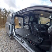 O poznání praktičtější mi osobně přišla druhá část balíčku “Sesame Open”. Jak je vidět z obrázku výše, lze tu sklopit sedadlo spolujezdce do roviny s podlahou a upravit přepážku oddělující prostor pro náklad tak, aby vedla podél středového tunelu. Jde to poměrně snadno, celá operace přestavby vozu z dvou- na jednomístný zabere asi minutu. Konstrukce přepážky nijak nepřekáží, výhled ven neobstruuje, jen pokud jste zvyklí odkládat si věci na sedadlo spolujezdce, máte přirozeně smůlu. Na převoz různých žebříků, trámů a podobně je to k nezaplacení, vůz snadno pojme třímetrové náklady. Jen je třeba je řádně zajistit, aby při brždění nepoškrábaly palubní desku u spolujezdce. V neposlední řadě systém ocení i lidé, kteří ve voze rádi přespávají.