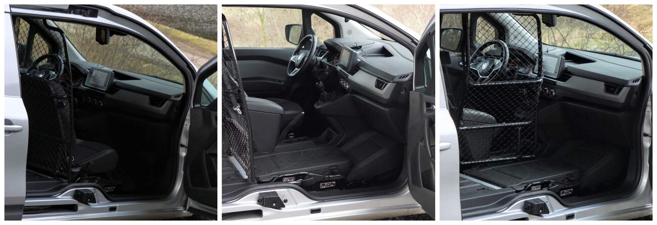 I tato vychytávka sebou ale nese určité kompromisy. Tím nejzásadnějším je právě ona sklopná židle spolujezdce. Ta je oproti standardní verzi bez Isofixu a trochu užší, méně pohodlná a s nížším rozsahem nastavení. Také si pochopitelně do této konfigurace není možné objednat třímístnou přední lavici. Zamrzí i skutečnost, že drátěná přepážka přirozeně nemá žádné zvukově ani tepelně izolační vlastnosti a tak je ve voze docela hluk a trvá déle, než se vytopí. Dobrou zprávou pro ty, kteří by, stejně jako já, uvítali jen ono sklopné sedadlo a bez absentujícího B-sloupku se obejdou, budiž skutečnost, že si ho mohou za rozumných pět tisíc přikoupit i do obyčejné verze.