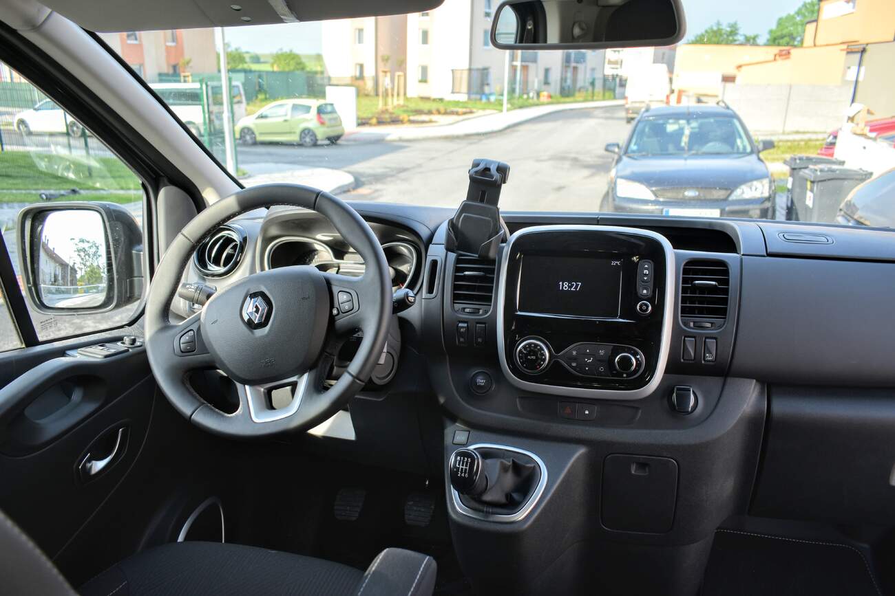 Sedadla jsou zkrátka tam, kam je výrobce umístil a budete si na to muset zvyknout. Tedy můžete je otáčet, ale nakonec je stejně usadíte do obvyklého uspořádání. Stejně tak mě nenadchly ani hluboké podlahové lišty, které sice jsou k ničemu, zato polykají malé předměty a s chutí se zakusují do tkaniček od bot. Jenže tohle auto beztak bude sloužit nejspíš jako hotelový taxík, a tak se můžeme na nějakou variabilitu a užitkovost konečně vybodnout. Když tedy přeci jen zavítáte na sedadlo řidiče, zjistíte, že tady je Renault ještě pořád o generaci pozadu oproti moderním Němcům. Relativně malá dotyková obrazovka se zastaralým rozhraním (současný R-Link se sem bohužel nedostal) i pokulhávající ergonomie dávají tušit, že tohle je už pár let pořád to stejné auto. Velký hrnek na kafe není kam dát, k držákům se musíte předklánět (což je poslední dobou u dodávek obvyklý nešvar, viz Multivan), abyste na ně dosáhli a páčka ovládání rádia pamatuje dobu, kdy slovo smartphone ještě neznamenalo zhola nic.