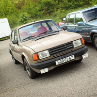 Nejmenším automobilovým účastníkem byl dle mého “odborného měření” bílo-modrý Trabant 600. Šestistovka, bez jedničky na konci je starší, zakulacenější a roztomilejší typ. Lehká patina podtrhovala auru východního bloku a i když ubírala ždibec roztomilosti, mě se líbil stejně. Možná je to způsobeno pouze tím, že jsem s ním nikdy nemusel jezdit a dnes potkat na ulici pojízdný kousek už je, vzhledem k počtu vyrobených kusů, vlastně docela vzácnost.