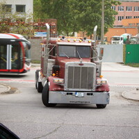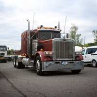 Nakonec jsem si nechal naopak největšího účastníka. S drobným zpožděním dorazil tahač značky Peterbilt. Ještě po Americku, s motorem před kabinou, je to vážně macek. Parádní kontrast k Trabantu. Svým zašlým hnědým lakem dával na první pohled z dálky vzpomenout na legendární hororovou filmovou klasiku – Duel. I když při bližším ohledání byl tenhle ještě příliš nóbl. Jestli byl Trabant vzácnost, tohle naživo vidím asi poprvé. Budu se opakovat z jednoho z mnoha předešlých reportů, ale vždycky když už si myslím, že jsem všechno viděl a nic mě, alespoň v naší brněnské kotlině, nemůže zaskočit, je spousta z našich čtenářů připravených mě přesvědčit o opaku. Tleskám.