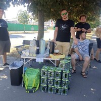 Dokonce i občerstvení se nám podařil zajistit dostatek. Já k tradičním vychlazeným nealko radlerům tentokrát, berouc v potaz až přílišnou přízeň počasí, přidal ještě obří džbán s vodou a ledem. A jako třešničku na dortu mi den před akcí psal kamarád Petr: “Hele, zbyly mi tu z eventu nějaký energeťáky, chci se jich zbavit, mám je přivézt?” No, proč ne. Jenže to jsem netušil jak rozdílná může být definice slova “zbyly nějaký”. Já si představoval třeba 5-10 kusů, nebo snad i 20? Ukázalo se, že zbytek může být i nějakých 150 plechovek. Jejda. Nejspíš je přivezeme i přístě, tak si koukejte rozebrat zbytek zbytku!