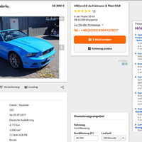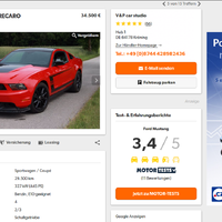 Bohužel, evropští kupci Mustangů na takové věci příliš neslyší. Mustang se na této straně Atlantiku kupuje obvykle právě proto, že je americký. A kupci se tak snaží o americký charakter. Takže spíše najdete automatické převodovky, pruhy a kýčovité doplňky, které podporují image Mustangu jako nevkusného laciného vehiklu pro tlusté amíky (jeden takový exemplář nedávno testoval náš blogger krab). V inzercích se navíc přítomnost Performance Package obvykle neuvádí, takže i v na Mustangy bohatých vodách inzertního serveru Mobile.de hledáte takto vybavené kusy jen těžko. Po chvíli zuřivého hledání se mi podařilo odhalit tři exempláře, u kterých jsem si jist nebo téměř jist, že jde o Peformance Package. První z nich je nenápadná 2011 za příznivou cenu, následovaná krásnou ale drahou 2012 a konečně až podezřele levnou 2014, která se jeví býti ideální volbou – pokud jde skutečně o Performance Package, což sice kola a rozpěra naznačují, ale nemůžeme si být úplně jisti.