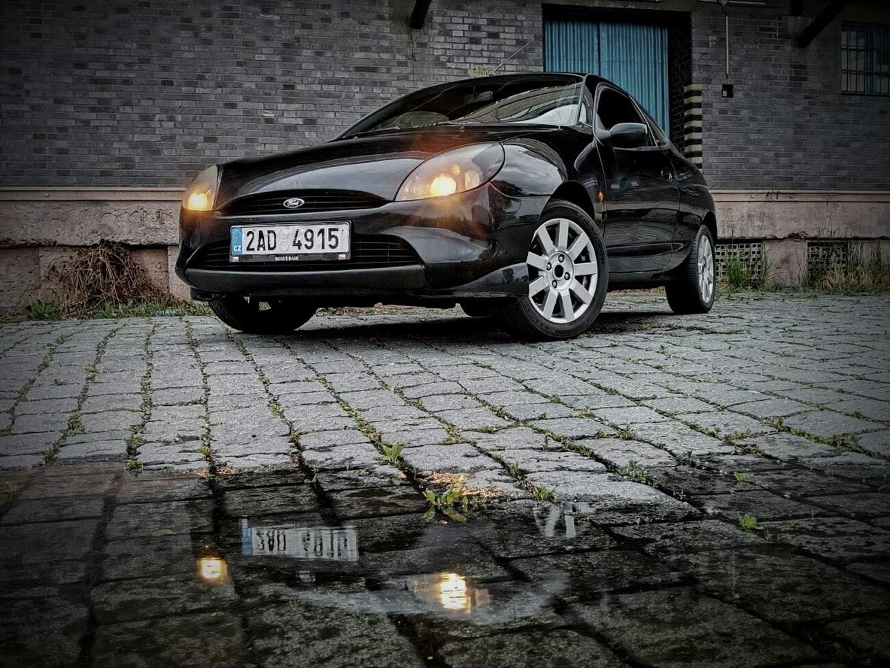 Novou Pumu mi půjčil Hamster na pár kilometrů. Chtěli jsme jí vyfotit na mém oblíbeném místě ve Strašnicích, po cestě jsem jí ale prorazil bočnici pneumatiky (v dešti se mi schovala díra na silnici). Absenci rezervy jsme vyřešili instalací R15 ráfku z Volva, který jsem měl doma, další den jsem koupil dvě gumy od Continentalu, nechal Forda přezout a vše bylo zase sluníčkové. I takovéhle věci se holt stávají. Teoreticky by to šlo řešit přes pojišťovnu, ale prakticky mám raději, když se takovéhle situace po domluvě se správcem vozů od automobilky řeší napřímo. Protože i bez takových karambolů mají své práce dost.