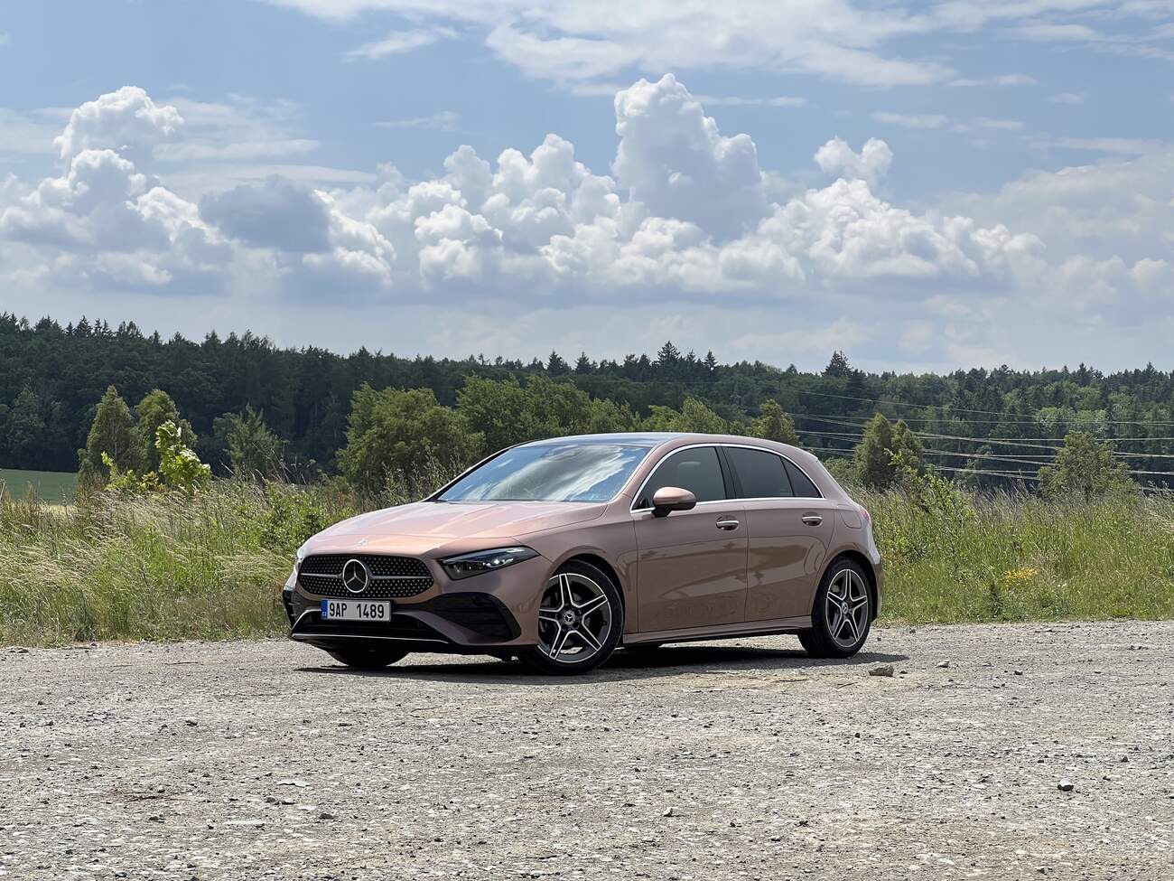 Aktuální čtvrtá generace se vyrábí od roku 2018, a minulý podzim dostala facelift. No, facelift…pokud nad “áčkem” po večerech neslintáte nebo vám nestojí v garáži, spíš si rozdílů nevšimnete. Jiná grafika světel, jiný zadní difuzor a změna čelní masky (místo “diamantů” na ní nyní naleznete hvězdičky) prostě není příliš výrazná, ale to ničemu nevadí, naopak – současná generace třídy A je prostě hezké auto a facelift jej akorát uhladil. Vevnitř pak na řidiče čeká nový volant po vzoru ostatních modelů značky a nejnovější rozhraní MBUX naimplementované do horizontálního rozhraní displejů. Facelift také přinesl nové barvy laku i interiéru, třeba tuhle pěknou měděno-růžovou Rose Gold.