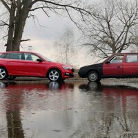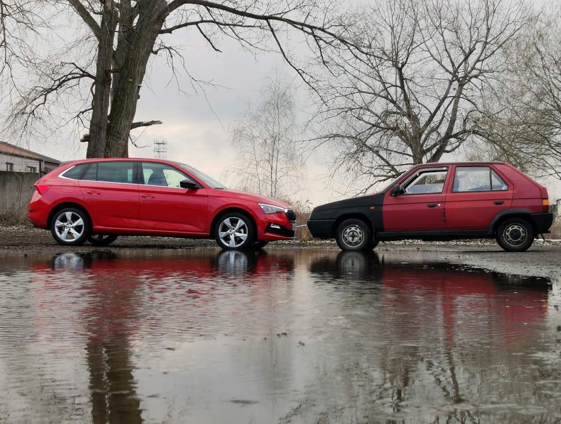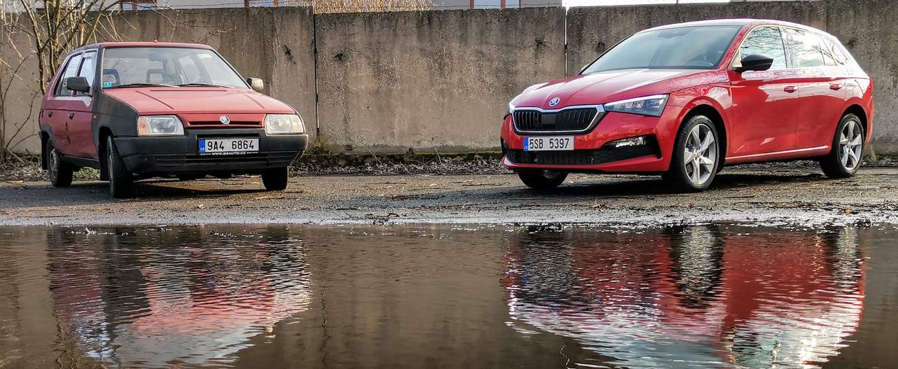 Asi nejzásadnější rozdíl dvaceti let vývoje je samozřejmě znát za volantem. Zatímco Favorit bez posilovače a s karburátorovým motorem s manuálním sytičem vyžaduje od řidiče zvláště “za studena” soustředění a věnování se jízdě, Scala se sedmistupňovým DSG a armádou jízdních asistentů odveze bezpečně do cíle i průměrného “uživatele automobilu”. Ruku v ruce s tím jde i pocitové vnímání rychlosti. Ve Favoritu už se kolem dálničního maxima necítím úplně jistý v kramflecích, auto trochu plave a motor hodně řve, Scala rychlost maskuje a na sedmičku točí něco kolem dvou tisíc otáček.