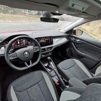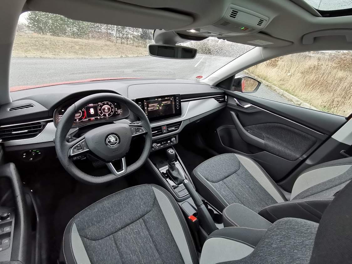Ve Scale mám pocit, že mě interiér mnohem více obklopuje. Sedadla mají boční vedení, pod lokty jsou připravené opěrky, volant má přesná vybrání pro palce a kam se podívám, nachází se nějaké tlačítko, displej, nebo alespoň polička. Rozhodně je tu všeho mnohem více. Testovaná verze je vybavená digitálním přístrojovým štítem, který mi pije krev svojí nízkou obnovovací frekvencí (v periferním vidění bliká a “tahá za oči”), naopak musím konstatovat, že oproti nedávno testovanému Kamiqu tu docela spolehlivě funguje infotainment. Vlastně bych mu vytknul jen jedinou věc – po nastartování mu trvá asi 15 vteřin, než naběhně. A po tu dobu nezobrazí nic, ani obraz z couvací kamery. Pokud jste tedy zvyklí bezprostředně po nastartování vycouvat z parkovacího místa, budete to muset zvládnout jen se zrcátky, nebo chvilku počkat.