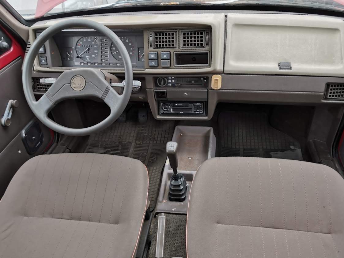 Jakkoli se oba vozy zvenčí zdají rozměrově odlišné, po usazení za volant mě překvapilo, jak malý je rozdíl ve vnitřním prostoru. Důvod je zřejmý. Zatímco Scala izoluje posádku od vnějšího dění mnoha vrstvami plechu, ocelových výztuh a čalounění, ve Favoritu jsou mezi řidičovým stehnem a vnějškem vozu dva tenké plechy a koženka, pod kterou je kus molitanu. Odpověď na otázku v jakém z těchto dvou vozů bych chtěl hypoteticky absolvovat dopravní nehodu je tak nasnadě. Vzdušností a pocitovou prostorností se ovšem Scala Favoritu zkrátka nevyrovná.
