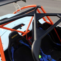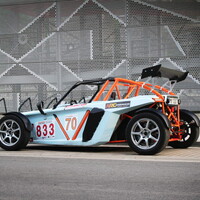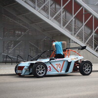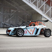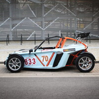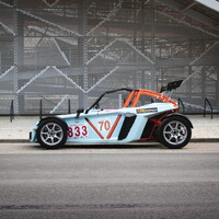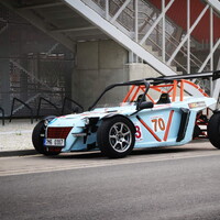 Nafasoval jsem testovací kousek s oranžovým rámem a světle modrou karoserií s legendárním polepem Gulf. Hezká a velice příhodná barevná kombinace. Možná se vám na první pohled nepozdávají proporce. Věřte však, že navzdory naprosto rozdílné siluetě, kvůli motoru uloženému na opačném konci, se rozvor oproti Catu liší o pouhých pět milimetrů. Je potřeba se dívat spíše optikou ostatních okruhových hraček, rovněž s motory umístěnými vzadu jako jsou např. KTM X-Bow nebo Ariel Atom.