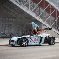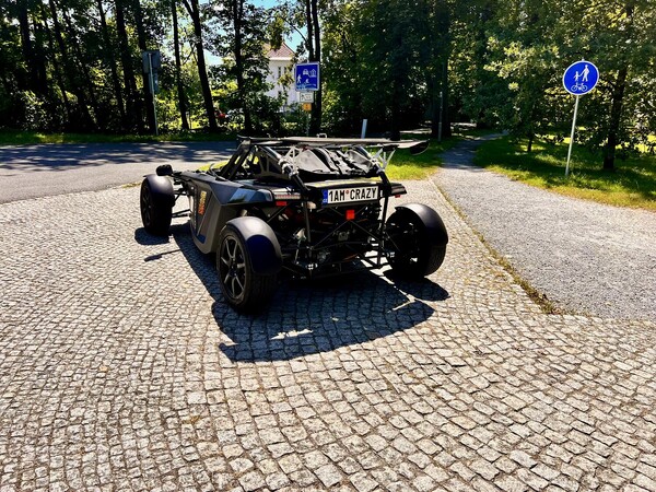 Je čas se přesunout k negativům. K jízdě zábavné nebo sportovní asi nemám výhrad, ta je deset z deseti. Jen jedna věc, nešly mi při brždění dávat meziplyny, pedál plynu byl výš než brzda i nesešlápnutý, takže při brždění se vzdálenost mezi nimi ještě zvětšovala. Jistě bude možné doštelovat podle chuti. Po dvojím šoupání s pedály už se mi do toho nechtělo pouštět a jezdil jsem prostě bez meziplynu. Ostatní poznámky budou souviset spíše s “denním použitím”, i když je jasné, že takhle Sigmu nikdo reálně používat nebude. Spojka je dost tuhá, musel jsem si zvykat a po celém proježděném dni jsem měl pocit, že mi upadne koleno. Možná by stačilo méně řadit. Narazil jsem párkrát na problém s výhledem. Sedí se vážně nízko, takže třeba i vzrostlá tráva u silnice může v zatáčce trochu překážet. Větší zábava je při (vy)parkování, pokud jste připoutáni čtyřbodovým pásem, dost špatně se ohlíží dozadu. O nebývalém přílivu pozornosti jsme mluvili, někdo by ho mohl vnímat jako nevýhodu, pak bych doporučil transport v zakrytém přívěsu a vytahovat pouze na okruhu. S pár stížnostmi přišli také spolujezdci. Prý se nemají čeho držet, i když jde spíše o psychickou oporu, s pořádně utaženými pásy si stačí zapřít nohy a držet se nemusíte. Také je prý dost teplo na nohy (spolujezdcům), protože podél pravé strany vede hadice ke chladiči vpředu.