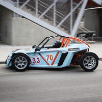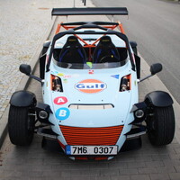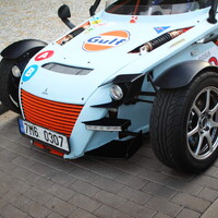 Gulf neslouží pouze k novinářskému testování, ale také továrnímu. Vývoj probíhá neustále. Když konstruktéři přijdou s nějakou novinku či vylepšením, obvykle ji právě tohle auto vyfasuje jako první, aby se zjistilo, jak bude fungovat ve skutečném světě, ať už se jedná o nové nastavení podvozku nebo různé prvky “luxusní” výbavy usnadňující každodenní používání. Laminátová karoserie je sice na pár místech již lehce ošlehaná okruhovým testováním, na druhou stranu se zde najdou i novější vychytávky, které mají přijít až na letos vyrobené vozy. Trochu složitě se to určuje, jelikož je každý kousek vlastně unikátní ruční výroba a také díky průběžným vylepšením hádám, že dva stejné ani neexistují. V případě našeho exempláře se jedná spíše o vrchol nabídky, a sice model Performance s několika moc povedenými trumfy v rukávu: stavitelné tlumiče HP Sporting, čtyřpístkové brzdy Wilwood (na všech kolech), spoiler, rám rozšířený o přední klec, uzamykatelnou přihrádku a pár dalších vychytávek.