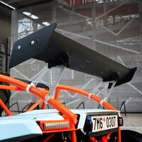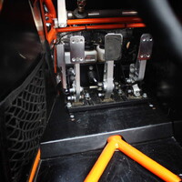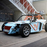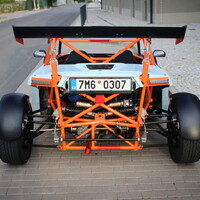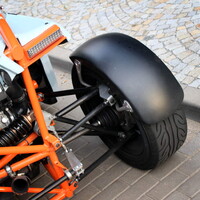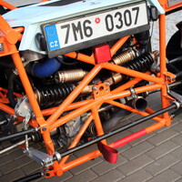 Podvozek je osazen push-rod zavěšením, které jistě znáte z… ne, z motokár tentokrát fakt ne, měl jsem na mysli F1. Jelikož se jednalo o silniční test, tak mi v Sigmě mi přehodili stavitelné tlumiče HP Sporting tak, aby auto sedělo výše a nejspíš je i trochu obměkčili. Přesně, co vidíte na fotkách je “vyšší” světlá výska, pro pohyb na silnici. Na okruh lze ještě o 20 mm snížit. Všechny tyhle komponenty jsou ukončeny poměrně skromnými koly o rozměrech 15’’ vpředu a 16’’ vzadu s pneumatikami v rozměrech, které najdete třeba na Fabii. Dokonce i rozteč kol je 5x112, takže je lze klidně prohodit za vaše oblíbené.