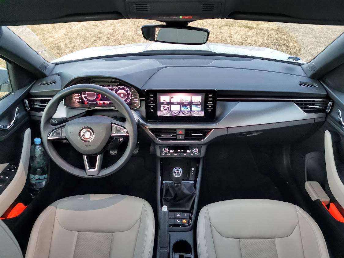 Znalý zvyklostí ohledně sedadel instalovaných ve vozech domácí automobilky jsem měl trochu strach, zda se svou vyhublou postavou nebudu ve škodovce trpět, doby mučících sedadel z dob první Octavie jsou ale zdá se definitivně pryč. V Kamiqu se sedí příjemně, samozřejmě trochu výše, jak už to u crossoverů bývá, ale díky širokému rozsahu nastavení sedaček i volantu není problém si najít ideální pohodlnou řidičskou pozici a výhled ven je i pro řidiče menších postav opravdu příkladný. Rád bych napsal, že příjemnému posezu sekunduje snadné a intuitivní ovládání vozu, ale bohužel to tak jednoduché není.