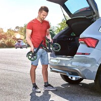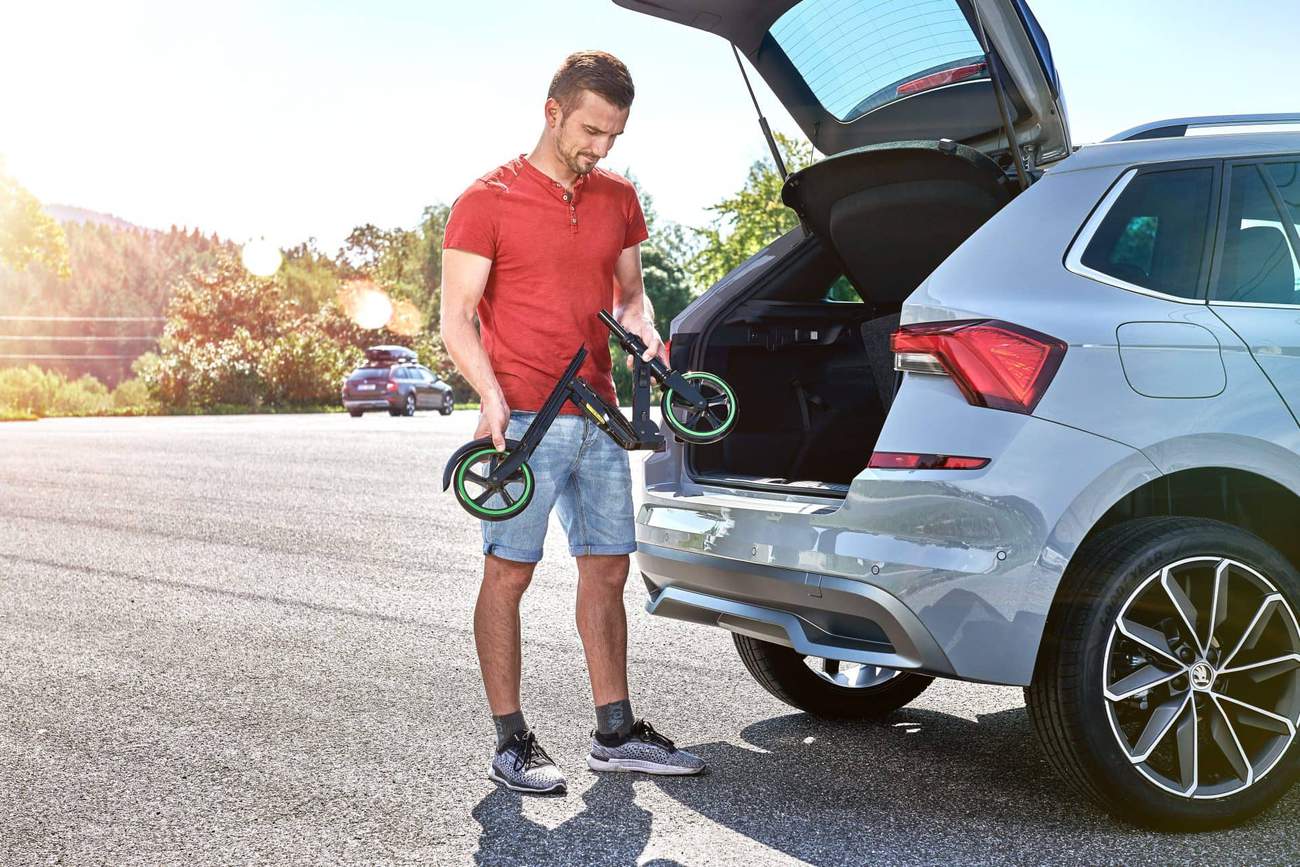 Nakonec se mi ale přístup škodovky, která si, alespoň podle hesel jako “trvale udržitelná mobilita”, nebo “patentované Simply-clever skládání” dělá tak trochu legraci sama ze sebe docela zamlouvá. Zaplavení měst zelenočernými koloběžkami (nezaměňovat se zelenobílým Lime zlem) nás sice asi nečeká, ale dříve, nebo později si tenhle nesmysl určitě někdo přihodí do konfigurátoru při vybavování fleetového služebáku na dorovnání maximální povolené částky utratitelné za vůz. A vlastně proč ne. Děti to ocení. Do budoucna by se mohly objevit třeba ještě skládací kolečkové brusle pod sedačkou spolujezdce, nebo skateboard ve stropním podhledu. Viva la udržitelná mobilita.