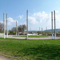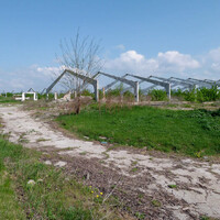 A protože jsem to propálil už v nadpisu, není těžké se dovtípit, že jde o pozůstatky trolejbusové trati. Linka, která si nenesla žádné číselné označení, protože byla jediná a tak si ji nebylo s čím splést, vedla ze spodní části vesnice, které bychom s trochou nadsázky mohli označit za jakési centrum až ke kolchozu na kopci nad vsí. Původní plány (na dobovém nákresu výše) počítaly s celkem čtyřmi zastávkami (plus obě konečné). Na půli cesty je pak vyznačena měnírna, jejíž objekt se dochoval dodnes (v galerii je to ta budka s kozami v popředí).