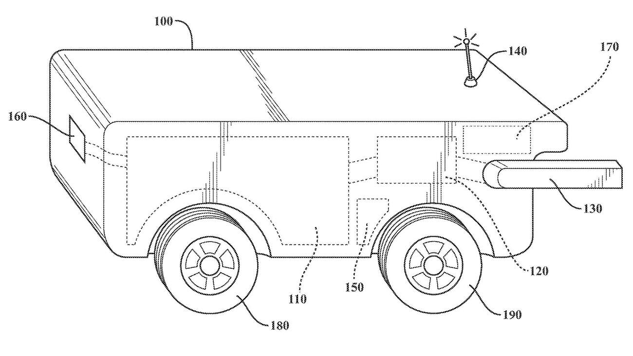 Jak tomu bude v tomto případě? Žádný nákres ani popis v patentovém návrhu na tuto otázku neodpovídá, ačkoli název patentu zní „On-the-fly autonomous vehicle refueling and recharging”, čili autonomní vůz k tankování a dobíjení za letu. Takto formulovaný název může naznačovat, že by návrh bral v úvahu rovněž fungování během jízdy.