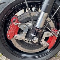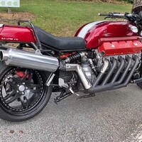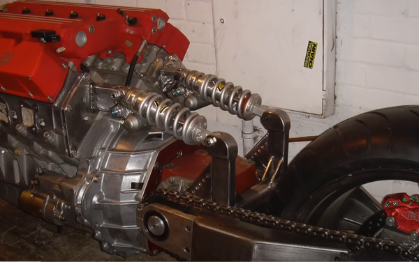 Tak to bychom měli od nejmenšího twinu po největší. Napadlo vás ale někdy, jaký největší motor by se mohl vlézt do motorky? Zdá se to tak logické, začít u největšího motoru, co se kdy dostal do sériového vozu. Osmilitr V10 z první generace Dodge Viper. Produkující na 450 koňských sil a dostatek kroutícího momentu i pro pick-up. Stěží představitelná porce pro dvě kola.Rám jako takový tu vlastně není. Na jednom konci je pouze přichycena vidlice a letmo uložená kyvka na konci druhém. Vlastně se dá s nadsázkou říct, že to není motorka, ale jen motor s kolečky. A žádná převodovka, kam by se tak asi vešla? Se vším tím výkonem prostě stačí jeden převod. Ten si můžete před vyjížďkou nebo lámáním rychlostního rekordu (o tom později) upravit výměnou zadní rozety.