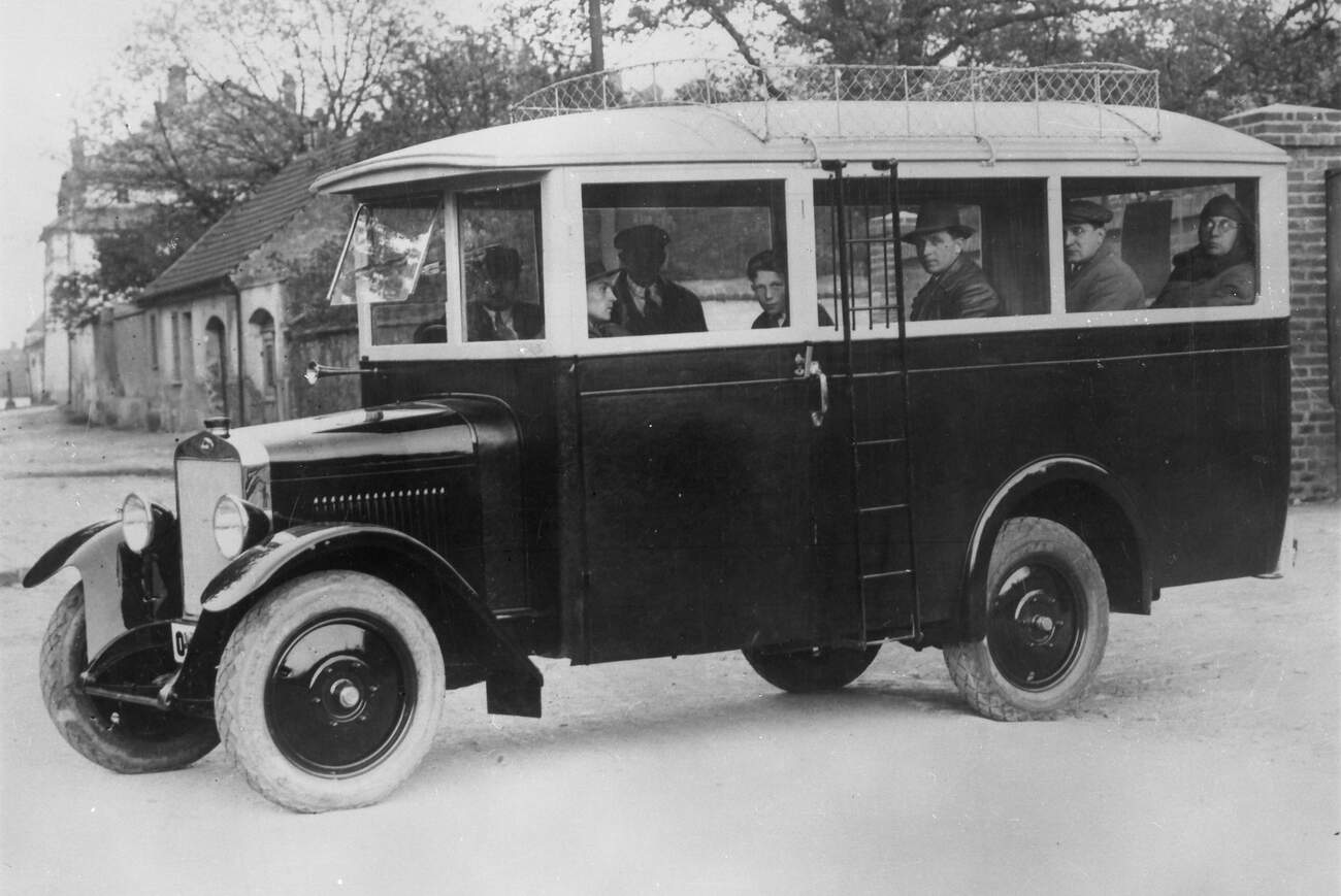 Nedlouho poté, v roce 1928, vzniká v tomto podniku i historicky první autobus. Čtrnáctimístný počin na nákladním podvozku Škoda 125 se nijak nevymykal tendejší běžné prodkuci na poli hromadné dopravy, přední část s kapotovaným motorem připomínala běžný náklaďák, vzadu se pak nacházela krabicoidní nástavba z plechů přibitých na dřevěném rámu.