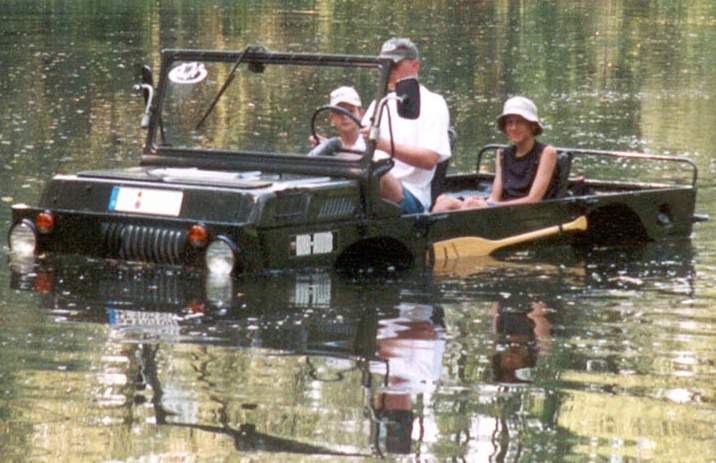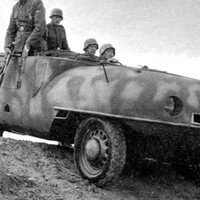 2. 9. 2019, 21:14Můj děda po válce něco takovýho měl jako trofej. Pamatuju si jen jednu starou fotku, kterou jsem naposledy viděl někdy před čtyřiceti lety - tvar to mělo jako kapotovaná pramice na kolech. Plus babiččino vyprávění, že se v tom povozilo až osm lidí, protože se dalo sedět i ve schránkách na bocích pontonu. Snad to bylo po Němcích, Rusové by se s tím asi až k nám netáhli.