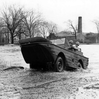 Praktické nasazení obojživelných strojů můžeme vystopovat do oblastí těžby dřeva v Kanadě a Jižní Americe. Parní remorkéry svážející dřevo po řekách musely překonávat silné protiproudy a mělčiny, k čemuž používaly lanové navijáky poháněné parními stroji. Pod lodě se nakladly kůly, po kterých se parník odvaloval, než opět dosáhl vodní hladiny. Jenže to tak trochu popírá tu část s automobilismem, že? Zrod prvních skutečně použitelných obojživelníků vynutila až druhá světová válka.