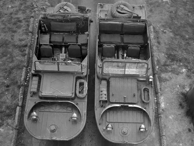 Za oceánem se na začátku čtyřicátých let rozjížděla mašinérie válečného průmyslu, která terorizuje svět dodnes. Američané se zdráhali do války zapojit, ale armáda si nevyhnutelného konfliktu byla vědoma a tak vznikaly výrobní kapacity a prototypy nových bojových strojů. Mezi nimi i DUKW, americkými vojáky vyslovovaný jako 'duck' – kachna. Pojmenování sice vychází z popisu technického řešení, ale název je to výstižný. Jako základ posloužil osvědčený třínápravový nákladní vůz GMC CCKW, zvaný též 'Jimmy'. Kabina byla posunuta nad motor a kolem vozu přibyl ocelový trup. Ve skříni přídavné převodovky bylo možné přiřadit pohon přední nápravy, pohon lodního šroubu, motorem poháněný naviják a kompresor. Kompresorem bylo možné doplnit tlak v pneumatikách, které byly pro potřeby vylodění na mokrém písku podhuštěny. V trupu byla instalována výkonná pumpa, která udržela plavidlo/vůz nad vodou i po proražení až pěticentimetrových děr. K ochraně osádky sloužil lafetovaný kulomet kalibru .50 BMG. Obojživelné kachny se podílely na druhoválečném úsilí v Africe, Evropě i v Pacifiku a byly natolik úspěšné, že po konci druhé světové války byly zkopírovány v Sovětském svazu. Ačkoliv soudruzi provedli dílčí vylepšení pro jízdu v těžkém terénu, jako základ posloužil ZiS-151, který měl k dokonalosti skutečně daleko zejména kvůli vysoké hmotnosti, nevýkonnému a žíznivému motoru a všeobecně katastrofální kvalitě výroby.