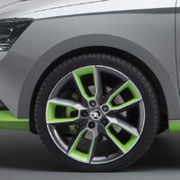 Model Afriq se vydal zas jiným směrem. Z původně malého SUV Kamiq vznikl, nebojím se napsat, dakarský speciál, který se nezalekne ani nejdrsnějšího terénu. Dostává techniku, kterou se výchozí model chlubit nemůže – třeba výkonný motor 2.0 TSI nebo systém 4x4 z Octavie. Design se zas inspiroval z opravdových závodních speciálů Fabia Rally2 evo. Blatníky tak byly nemálo rozšířené a i polep se podobal soutěžním vozům. Přímo z rally Fabie pak pochází třeba zadní křídlo, přední přídavná světla nebo rychloupínací systém kapoty. Také tu najdeme 15 palcová závodní kola od OZ Racing s terénními pneumatikami. Že by Škoda našla ideální model pro dálkové rallye soutěže a Fabii si nechávala na rychlejší podniky?