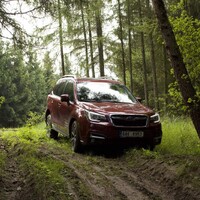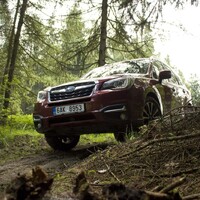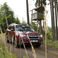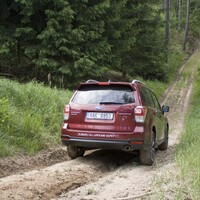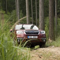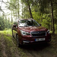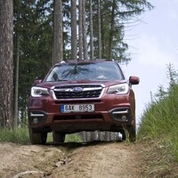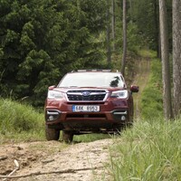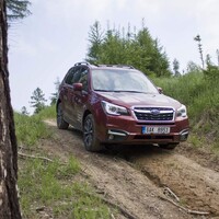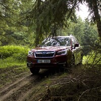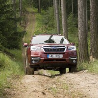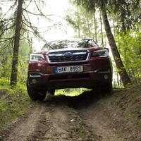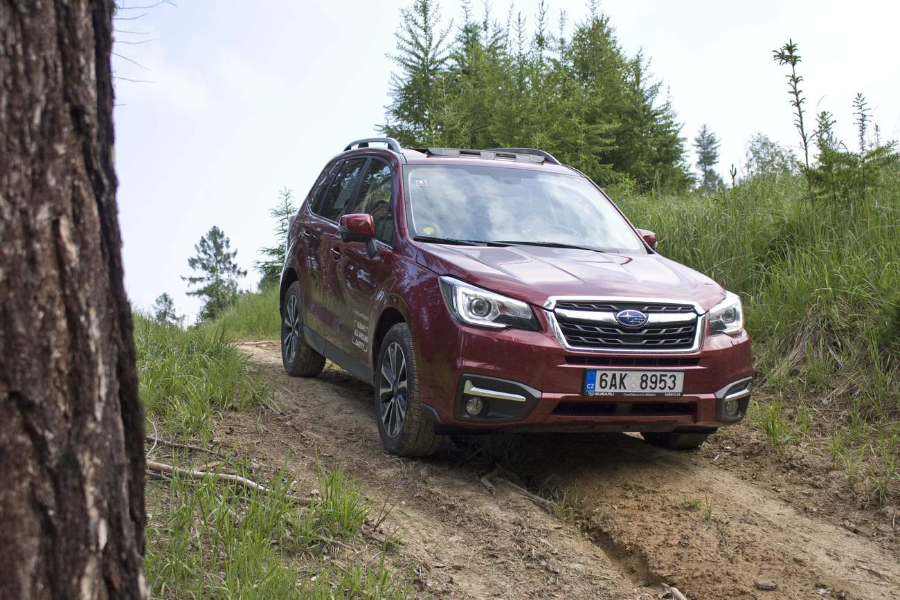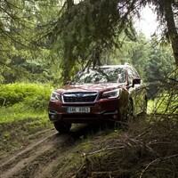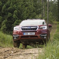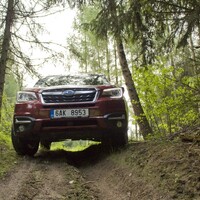 Konečně nastal čas vyvenčit Lesníka v jeho přirozeném prostředí – v lese. V Subaru nenajdete žádné voliče pohonu, žádné dodatečné řadicí páky, pouze jedno tlačítko s nápisem X-Mode. Tenhle ‚terénní automat‘ zahrnuje ovládání motoru, převodovky, čtyřkolky i brzd. Sám se postará o to, aby se točila ta správná kola, sám si reguluje rychlost v závislosti na sklonu klesání, sám dávkuje točivý moment při stoupání na kluzkém povrchu. Řidič jen vybírá tu nejschůdnější trasu. Funguje to naprosto přirozeně a překvapivě dobře. Světlá výška 220 mm a nájezdové úhly 25 ° jsou hodnoty blížící se spíš pravověrnému off-roadu než SUV.