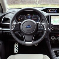 Do rukou se mi dostala nejvyšší možná specifikace. To už bohužel není ani STI ani WRX. Vystačit si musím s atmosférickým dvoulitrem e-Boxer, kterému lehce dopomáhá elektromotor. Ten má pouze 13 kW, ale umožní nenápadné plížení se po parkovišti, zhruba do 20 km/h. Jeho hlavní nápní práce je ale pomáhat při akceleraci a vylepšovat spotřebu. Kombinovaný výkon pak činí 110 kW (150 HP), což je v dnešní době přeplněné přeplňováním poněkud konzervativní hodnota. Pro důstojný pohyb po silnici je naprosto dostačující. Spárován je s bezestupňovou převodovkou CVT. S tímhle řešením jsem ještě nikdy nejel, takže mě zajímalo, jak to bude fungovat. No a tady jsem na rozpacích, moc se mi to nelíbilo. Hodíte cihlu na plyn, otáčky vyletí vysoko, ale zrychlování se dostaví až po chvilce. Je to takový zvláštní pocit, jako kdyby prokluzovala spojka. Jsou tu i „virtuální stupně“ a pádla pod volantem, aby to v člověku vyvolalo ty pocity z klasické převodovky, ale ani to mi moc nevonělo. Onen „prokluz“ je cítit tak nějak pořád, chce si prostě zvyknout na to, že tady to funguje jinak. Naprosto skvělý doplněk by podle mne bylo turbo, a nemyslím teď nějakou STI variaci se spoustou koní, ale čistě z praktického hlediska. Jednou při rozjezdu nafouknout a až do dalšího úplného zastavení z toho těžit efektivitu a reakce bez lagu. Další situace, ve které jsem s převodovkou bojoval, bylo couvání/parkování. Když pustíte brzdu, tak se začnete plazit, ale pomalu a bezpečně; za vámi ale stojí další auta a chtějí projet, tak přišlápnete lehce plyn, ať si jako pohne, načež se to rozjede zase moc rychle. Tak nějak nevím; více citu a méně plynu?