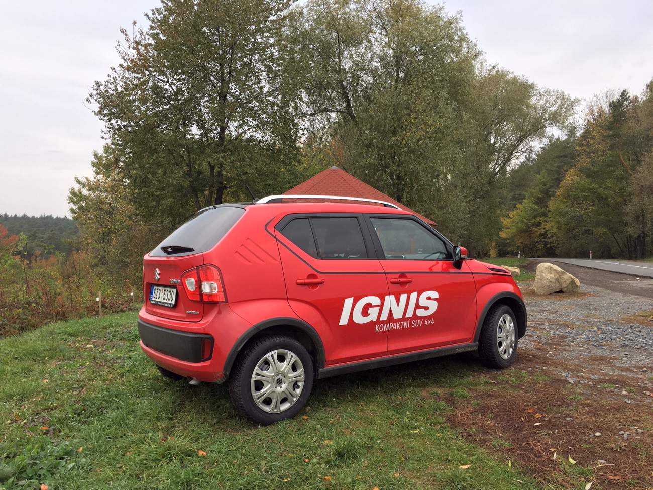 Jakmile se stres zmírňoval, byla příležitost ohodnotit i maličký Ignis. Přijeli jsme Jimnym, takže jsme si opravdu hodně pochvalovali prostornost a pohodlí, a že jimi Ignis oproti teréňáčku doslova hýří. Zkušební trasu jsem navíc o několik měsíců projel takřka do puntíku přesně s Citroenem Cactus a nezdráhal bych se Ignis označit za pohodlnější a jistější, přitom k tomu nepotřebuje žádné frikulínské tlumiče, které ještě navíc fungují jak kdy. Jistota podvozku se také hodila, protože v rámci úspory a zachování kinetické energie jsme se dohodli, že prostě nebudem brzdit. Když už bylo potřeba zpomalit, podřadil jsem o dva stupně. Takže nakonec nebyla nouze ani o dramaticky působící rychlou jízdu.