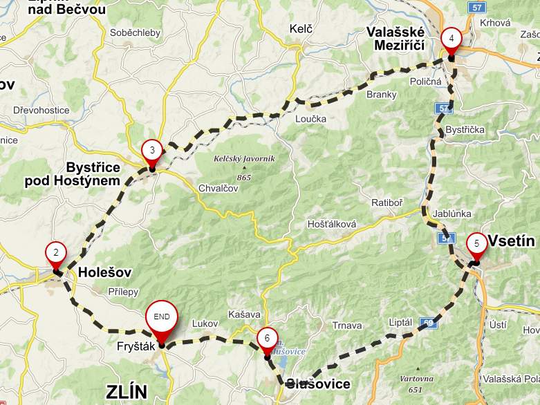 Do Bystřice se nemělo jet přes Holešov, ale přes Lukov, Kašavu a Chvalčov. To by potom byl náročný terén na ECOrally.