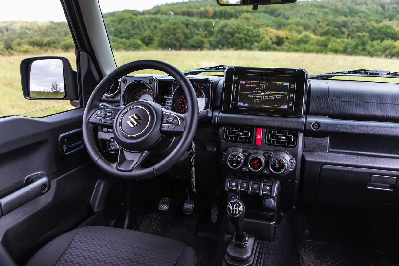 Se stylem zároveň nepřijdete ani o atom praktičnosti, všechno je dokonale podřízeno funkci – zvenčí i uvnitř. Materiály v interiéru se hrdě hlásí k cechu tvrdých pracantů, tlačítka i ostatní ovládací prvky jsou velké a humpolácké. Na střed se dokonce vrátil tradiční pákový ovladač čtyřkolky, velmi milý detail! Na druhé straně je vidět, že designéři přemýšleli i nad estetickou stránkou věci a vtiskli celému autu konzistentní industriální podobu. Jimny nám názorně ukazuje, že když je něco levně vyrobené, nemusí to vypadat jako z tržnice. Kéž by se evropským koncernům zachtělo trochu se přiučit.
