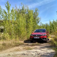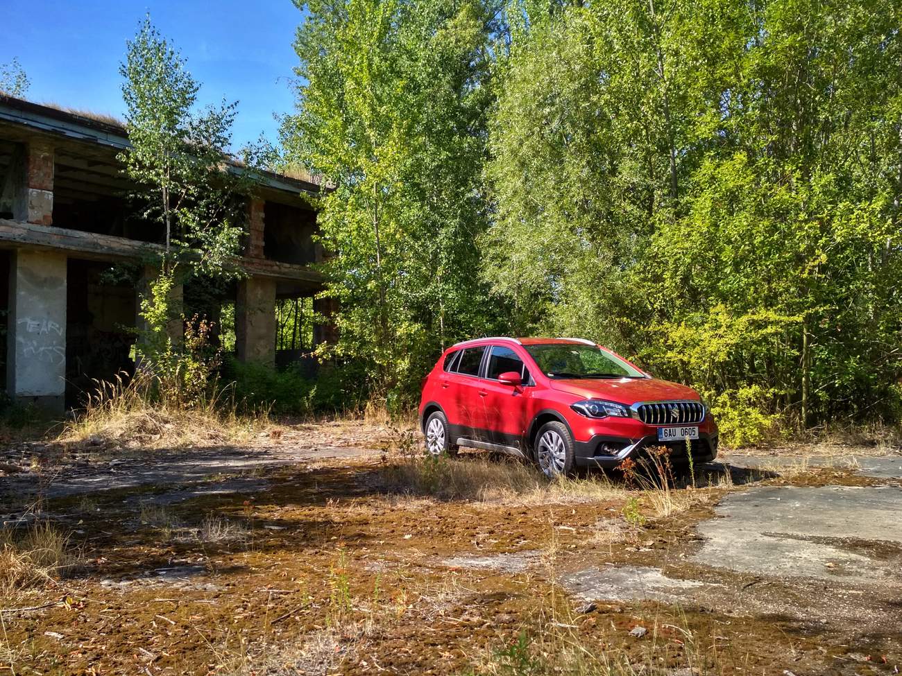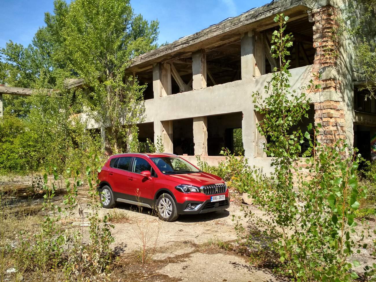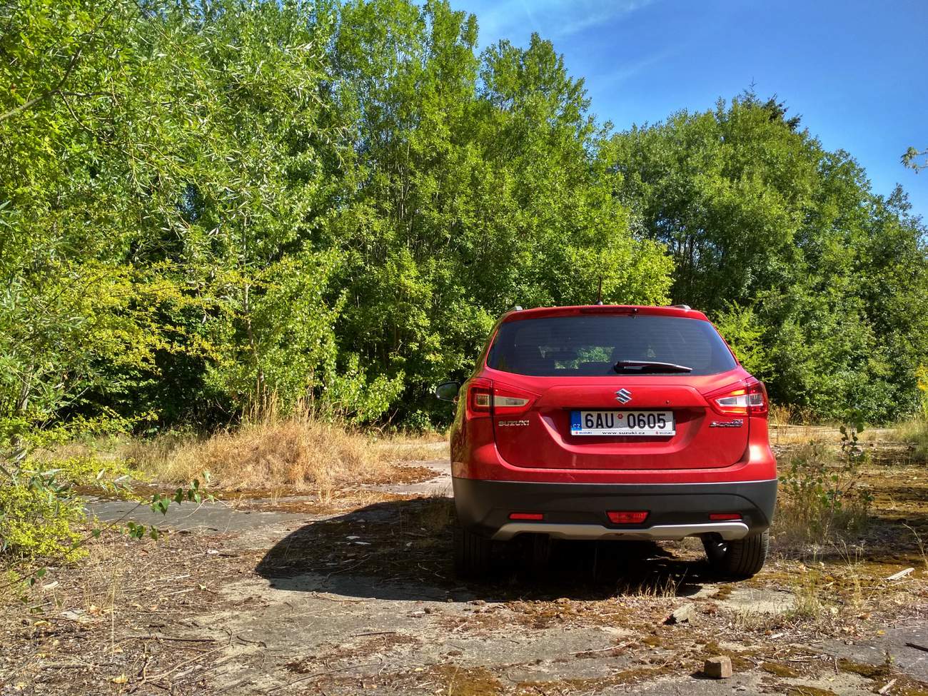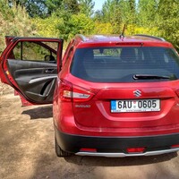 Jenže pak přijdou na řadu rozbité silničky a vysoká karoserie začne na výtlukách nebezpečně tancovat. Opět se projevuje schizofrenní nátura auta s nadšeným motorem, komunikativním řízením a důchodcovsky nejistým podvozkem. Nezbývá než zvolnit a lovit desetinky na spotřebě. Chvilku tam fakt bylo 5,5 l/100 km! Parkujeme ve svahu a já si až teď začínám auto prohlížet. První generace SX4 si našla spoustu spokojených zákazníků díky kombinaci roztomilého vzezření, slušného vnitřního prostoru a nízké ceny. Pak přišla generace druhá, která dala vale bratříčkování se s Fiatem a zavedla vyloženě tuctový výraz na téma ‚prostě auto‘, no a teď tu máme faceliftovaný model. Nenápadný vzhled se vytratil a malé Suzuki teď upraveným čumákem vzdáleně připomíná Jeep Cherokee. Škoda že se ke zbytku vozu moc nehodí, celek působí z každého úhlu jinak, ale krása je v oku pozorovatele a je možné, že za to, že se mi S-Cross moc nelíbí, můžu nakonec já.