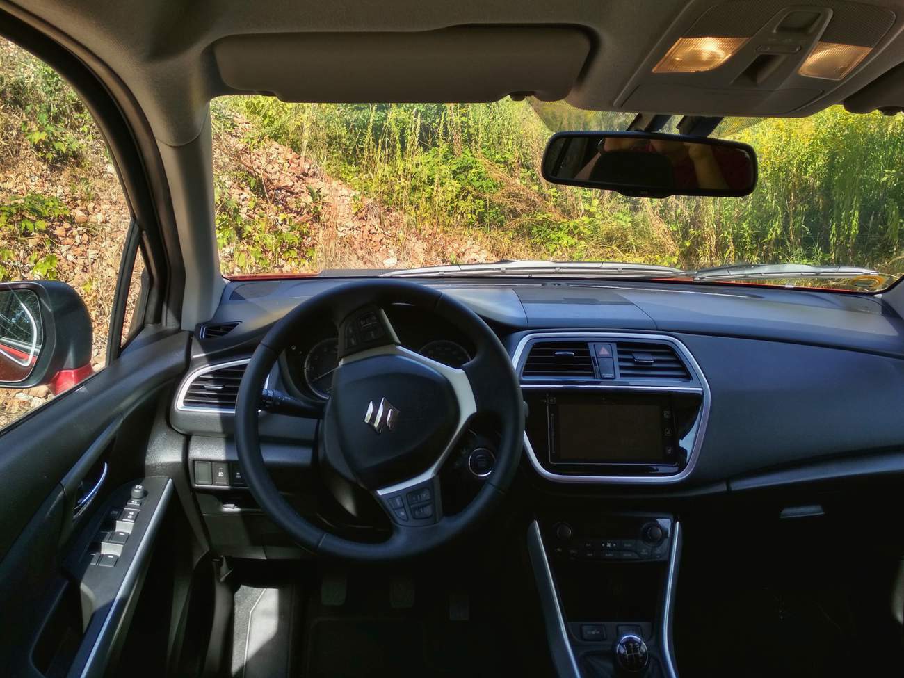 S-Cross je, jak název prozrazuje, crossover. Není to už hatchback, ale rozhodně to ještě není SUV a do prostornosti a variability MPV mu také ještě krok schází. Nabízí tedy půdorys hatchbacku, který lze bez potíží zaparkovat, zvýšený posez šetřící kyčle a důstojnost při nastupování a konečně nádech dnes tak oblíbené kategorie SUV. Ačkoliv je otravným zvykem automobilek zapůjčovat novinářům kusy přetékající výbavou, já vyfasoval základní motorizaci s tříválcovým přeplňovaným litrem o výkonu 82 kW a s pohonem pouze předních kol. Chvilku jsem se snažil vypátrat, kolik vlastně je na palubě příplatků, načež jsem zjistil, že Suzuki příplatky (kromě barvy) prostě nenabízí. Dostal jsem tedy vybavenější ze dvou stupňů a jediné hýření zastoupila metalíza (13 000 Kč). Z komfortních prvků jsem dostal k dispozici výhřev předních sedaček, zmíněnou duální klimatizaci a tempomat. Zvláštní kapitolou pak byl infotainment. Podobný systém jsem již vyzkoušel na palubě Mitsubishi ASX a musím říct, že ten na palubě Suzuki je jeho přímým konkurentem. Navigaci v sobě zabudovanou nemá, logika ovládání připomíná první MP3 přehrávače a tlačítko zpět je pouze softwarové a na většině obrazovek prostě chybí. Největším překvapením však bylo hlasové ovládání.
