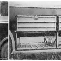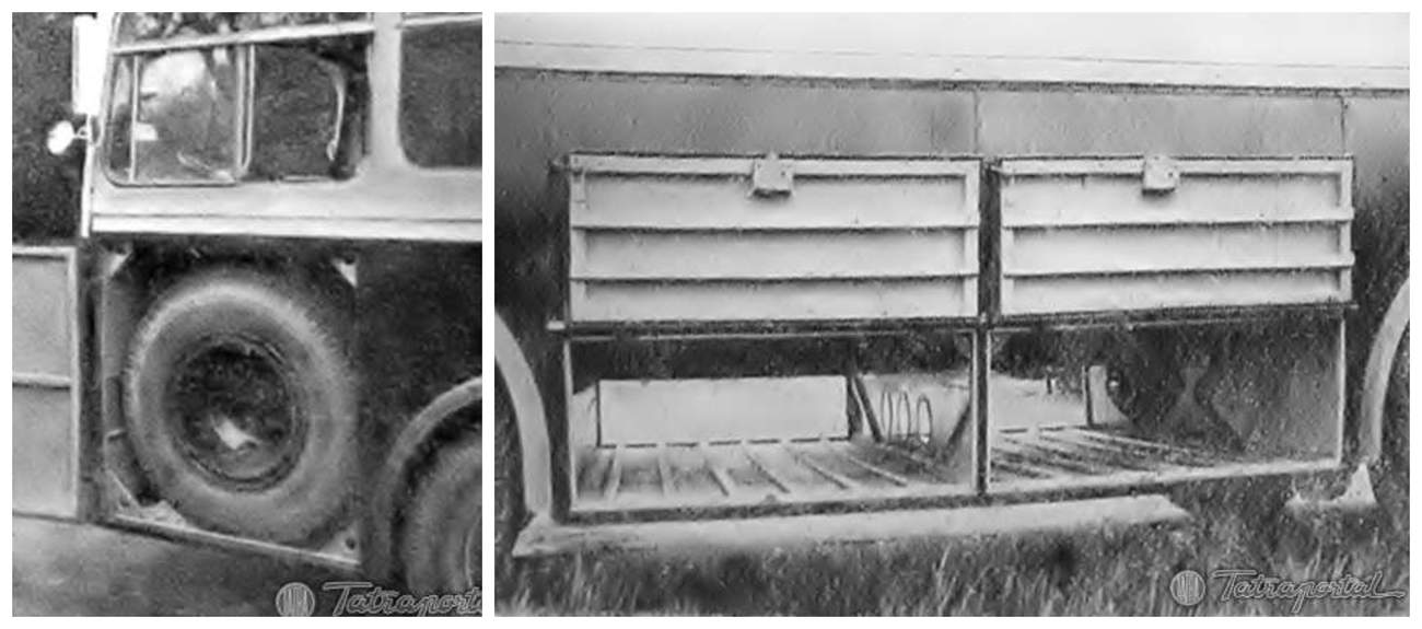 Náhradní kolo pod oknem řidiče a první československý autobusový “kufr”. Zdroj obrázku: www.tatraportal.sk