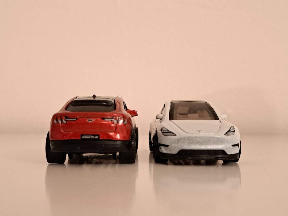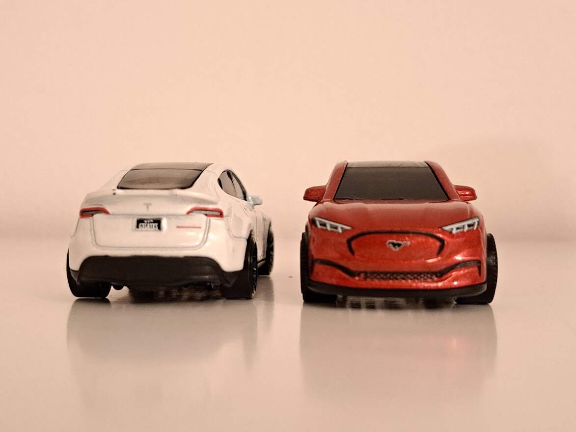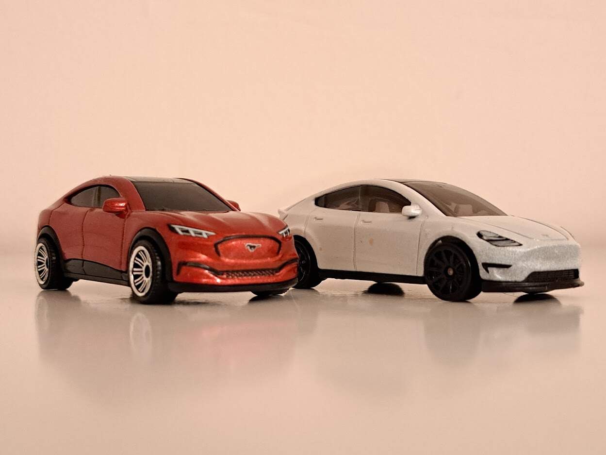Já vím, je to trochu dětinské, ale když jsem je viděl, jak vedle sebe visí v regálu, nemohl jsem nekonat. Oba vozy, jen tak pro pořádek, pochází z Tesca. Mustanga má na svědomí Matchbox, stál 39 Kč, oproti tomu Tesla z dílen Hot Wheels vyšla o desetikačku dráž. Co se zákaznického servisu týče, oba vozy dorazily zabalené v klasickém blistru na krátké kartě, nemusel jsem na ně čekat v pořadníku ani dělat žádné další otravné kroky, prostě jsem si je jen koupil. To dneska nejde snad ani u Fabie.