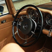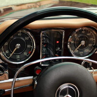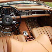 Na stejnou strunu brnká i interiér. Šedesátá léta byla ještě dobou před-plastovou, takže vevnitř tohoto SL na vás čeká jen kov, dřevo a kůže, jež jsou poskládané do nádherného, vkusného celku. A to zpracování! Všechno sedí na svém místě, nic se nehýbe, i po pětapadesáti letech mají všechny páčky a čudlíky jasně vymezený chod. Když si k tomu přidáte měkounká křesílka, je vám jasné, že jste v automobilovém ráji.