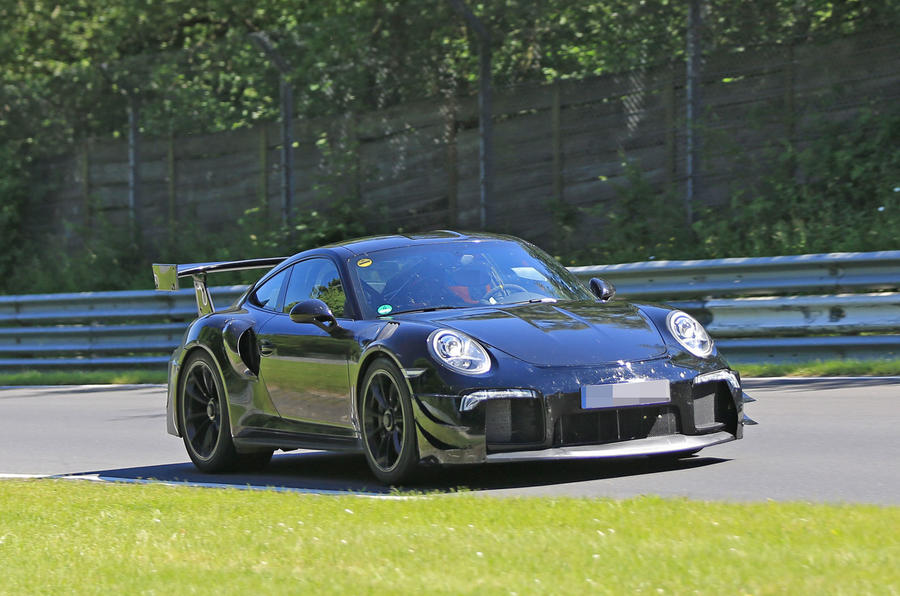 No a kde jinde chcete takové auto testovat, než na legendární Severní smyčce Nürburgringu, kam Porsche 911 tak nějak přirozeně patří. Není proto divu, že zde byla v posledních dnech spatřená černá, částečně maskovaná testovací mula, jejíž doménou je dramaticky vyhlížející aerodynamický kit a také enormně obří křídlo na zádi. V celkem dvouminutovém videu je zachyceno několik průjezdů, pár detailů, a taky jedno vytroubení fotografa se sebevražednými úmysly, který testovacímu prototypu skákal do cesty.