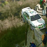 A potom přišla ta zatáčka. Úzká horská cesta lemovaná nízkou kamennou zídkou šplhala po úbočí prudkého svahu a právě tady Roman Kresta rozhodil záď auta do další ostré vracečky, když tu najednou přišla rána. Auto se sklouzlo příliš a v úzkém místě už nebylo kam. Záď naráží do kamenné zídky. Kresta pohotově řadí a snaží se s vozem pokračovat, auto ale nereaguje, kola se jen protáčí na místě. Zklamaná posádka si musí přiznat, že pro ně soutěž končí.