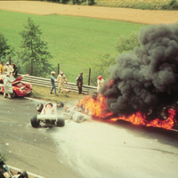 Při Velké ceně Německa na obávaném Nürburgringu dostal Lauda se svým Ferrari smyk, ztratil vládu nad strojem a situaci už nedokázal zachránit. Následoval náraz do bariéry, od které byl vůz odhozen zpět na trať, kde okamžitě začal hořet. A aby toho nebylo málo – uprostřed úzké trati za nepřehlednou zatáčkou do vraku narazil ještě Brett Lunger ve Fordu.