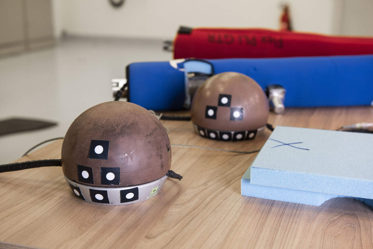 Kromě kompletních figurín najdeme v úhelnickém centru i jednotlivé části lidského těla (umělé, samozřejmě), které dostávají nejvíc na frak při kolizi auta s chodcem. Třeba tu máme dvě hlavy – dětskou a dospělou –, které se při testování vrhají proti kapotě či čelnímu sklu. Vždy do přesně určených bodů přesně určenou rychlostí. Hned vedle leží noha, přesněji stehenní partie, která by při testování srážky měla odolat bez zlomeniny. Při výrobě takové napodobeniny se řeší i takové detaily jako jednotlivé vazy, pevnost kůže nebo měkkost svaloviny. Jen v oddělení ochrany chodců se udělá pro každý model asi 24 tisíc počítačových simulací a potom ještě dvě stovky fyzických testů. „Naše testy významně ovlivňují výsledný design auta,” prozrazuje Jaroslav Urbánek, zodpovědný za vývoj ochrany zranitelných účastníků provozu. „Když designéři přicházejí se svými nápady, musíme je hodně usměrňovat, aby ochrana chodců fungovala.”