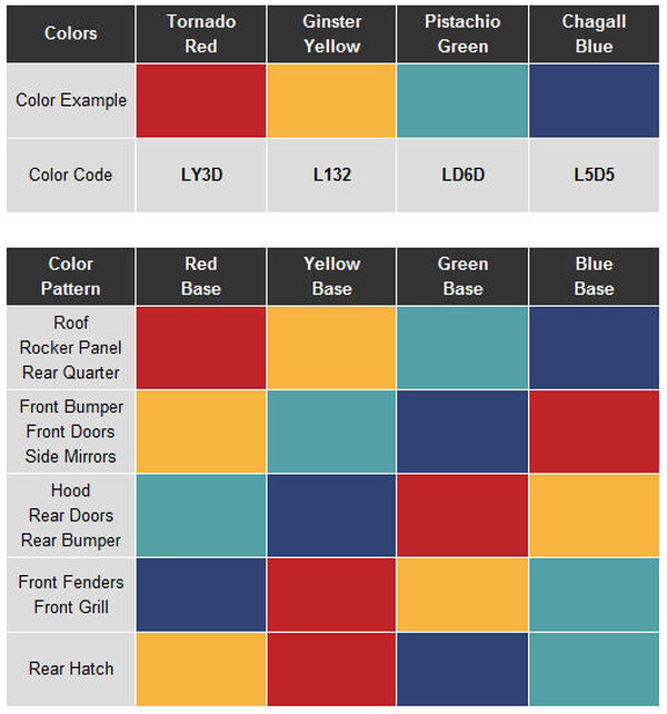 15. 11. 2019, 17:11Pokiaľ viem, Harlequin vznikal tak, že vyrobili 4 autá, každé v inej farbe, a potom vymenili jednotlivé diely karosérie tak, aby vedľa seba neboli dva v rovnakej farbe. Okrem Pola vyrábali v tejto edícii aj Golf III a Beetle. Prikladám tabuľku farieb.