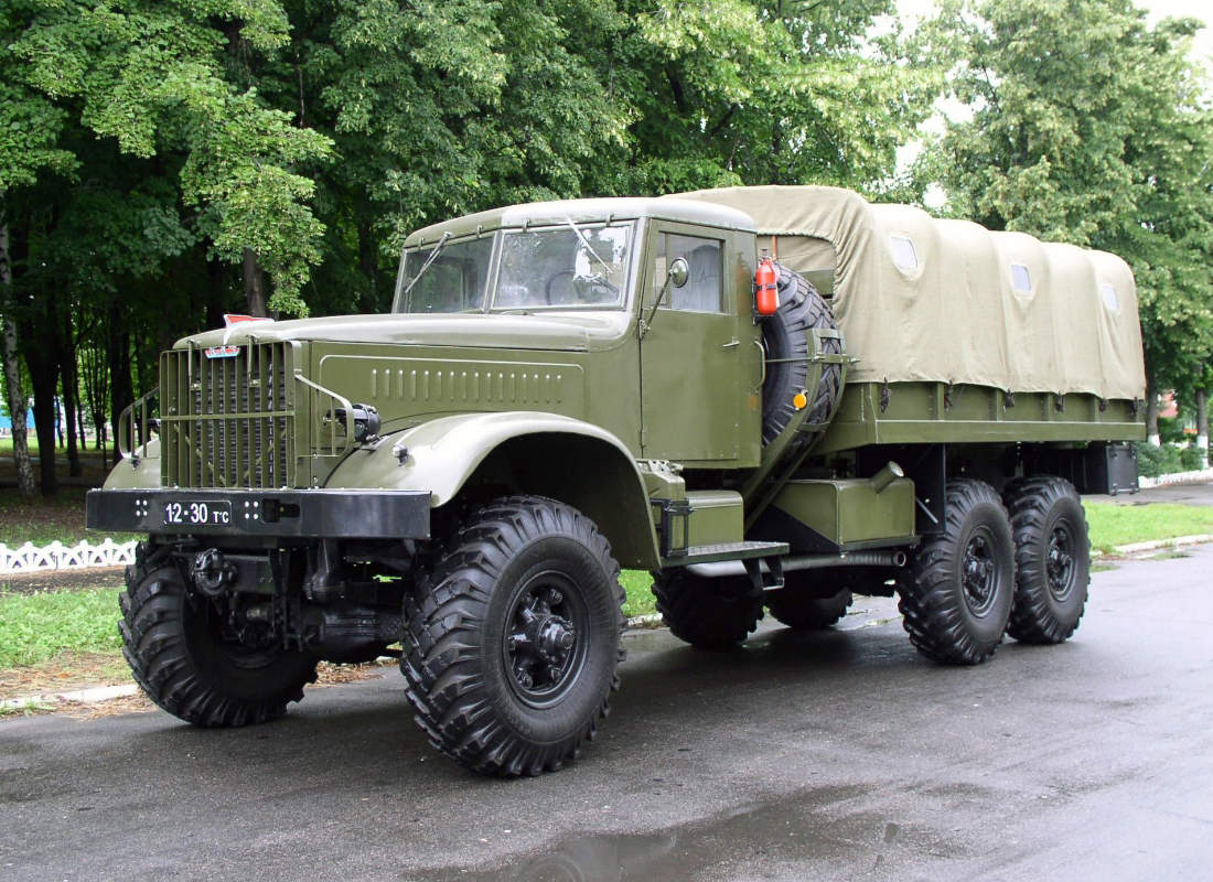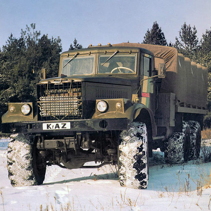 Nyní mi dovolte menší odbočku, abych osvětlil, v čem byl krávě KrAZ vyjímečný. Podle dobových propagačních videí vznikl jako sovětská odpověď na nehostinné podmínky Sibiře. Třínápravový vůz hrdinně kolonizoval dálavy a vedl sovětský lid k… ne, to vlastně není tak docela pravda. Když se po druhé světové válce ocitl východní blok v izolaci, bylo nutné těžit strategické suroviny v extrémních podmínkách. Vznikala města jako Norilsk (Норилъск), Murmansk (Мурманск), Najabrsk (Ноябръск) a Novyj Urengoj (Новый Уренгой). Mimochodem vážně si najděte chvilku a podívejte se, jak to tam v pravé ruské zimě vypadá. Paneláky jsou důkladně obložené polystyrenem a postavené na pilotech metry nad zemí. To aby v zimě byly izolovány závějemi sněhu i odspoda a v létě se nepropadly do permafrostu. Je pravda, že v takových podmínkách je třeba specializované techniky. Jen už moc není pravda, že to byly právě KrAZy, které jako první budovaly a zásobovaly tato města. Kdepak, poprvé do těchto končin zavítaly naše Tatry 111, kterým vděční obyvatelé města Susuman na řece Běrelech (Берелех) postavili pomník. Ačkoliv statečné Tatry bojovaly ze všech sil, tisícikilometrové trasy a zapřažení hned dvou vleků naráz si rychle vybralo svoji daň. Bylo třeba vyvinout náhradu a právě zde vstupuje do hry KrAZ.
