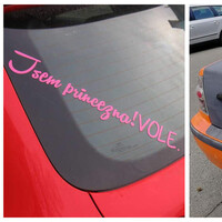 A vídám občas černou starou Fiestu co má vzadu růžový nápis "Jsem princezna vole" a obvykle z ní vyleze velikej fousatej chlap.